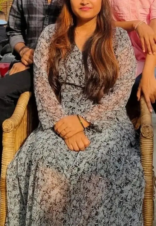 Women A-line Grey, Black Midi/Calf Length Dress
